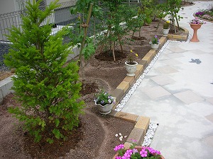 エクステリアの設計から花壇植栽の計画、施工までさせていただきました。